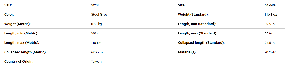 | Short Description | The DynaLock Explore Pole offers 3-section packability and the reliable strength of full aluminum construction, making it a versatile pole for snowshoers and mountaineers tackling everything from local hikes to distant expeditions. The pole’s dual DyanLock mechanisms offer a full range of length adjustment, along with the confidence of tool-free tensioning—which allows the clamping force to be adjusted on the fly. With both powder and trekking baskets, DynaLock Explore poles are primed for all-mountain, all-season exploration. Full aluminum strength and 3-section packability for snowshoeing and mountaineering in variable and rugged terrain.