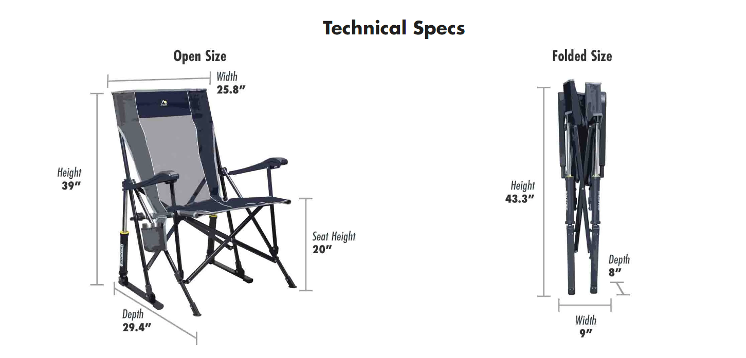 | Short Description | A folding rocking chair that combines comfort, innovation, and convenience. Rock and relax and keep cool on any adventure, then easily pack it up when it's time to roll. Spring-Action Rocking Technology™ Patented spring-loaded shocks allow for smooth rocking motion. Mesh Backrest Durable nylon mesh for continual airflow. Carry Bag Sling it over your shoulder for easy portability. Hard armrests Beverage holder